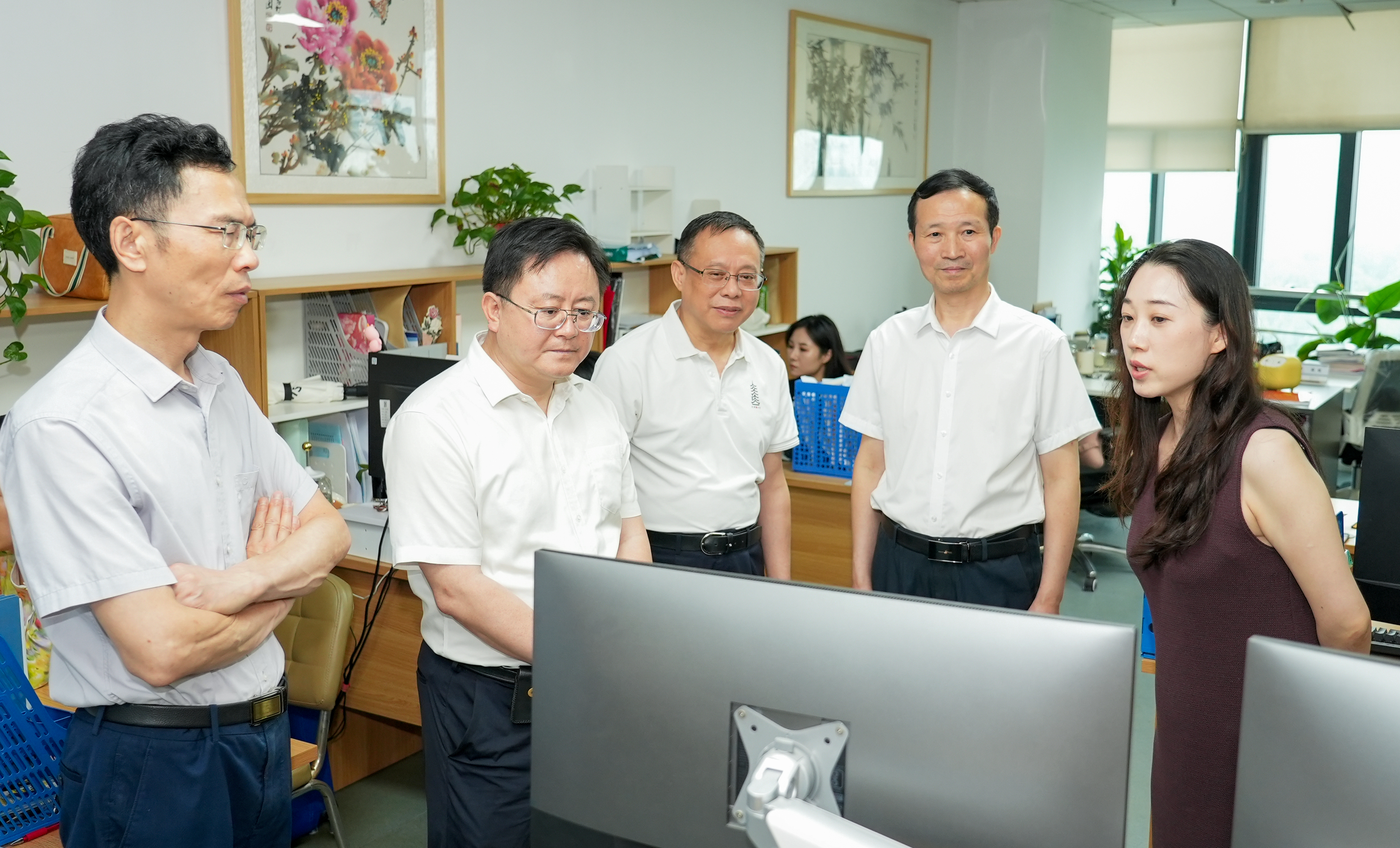 7月12日,安徽省司法廳黨委委員、副廳長(zhǎng)蔣文斌和省文化和旅游廳黨組成員、副廳長(zhǎng)邵海衛(wèi)一行到安徽新媒體集團(tuán)調(diào)研。集團(tuán)黨委書(shū)記、董事長(zhǎng)、總經(jīng)理章理中,黨委委員、副總編輯陳寶紅陪同并座談交流。